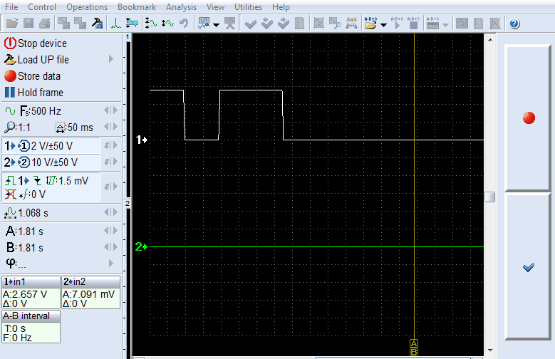 Rychlost vzorkovaní až 20 MHz při nepřetržitém datovém přenosu a ukládání záznamu na disk, což je unikátní vlastnosti přístroje. Pro počítače se slabšími parametry lze přizpůsobit parametry nahrávaní dle aktuálního měření.